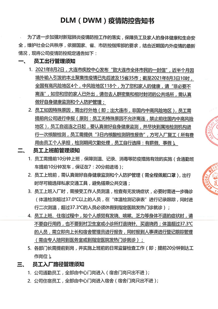DLM(DWM)疫情防控告知書(shū)
